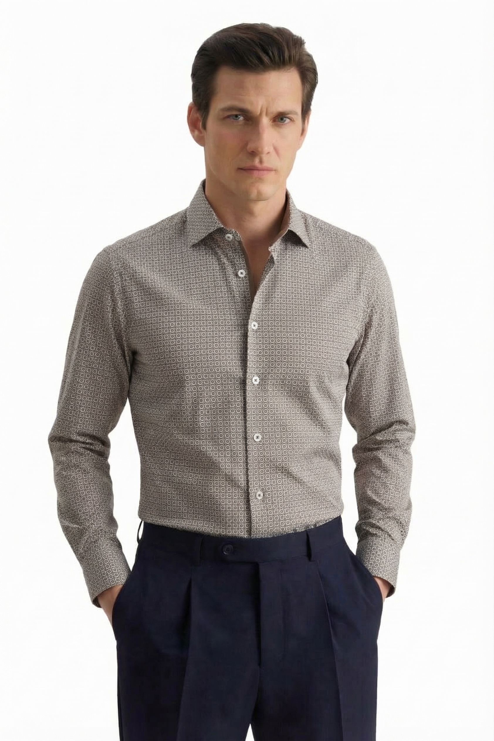 • Полуприлегающий силуэт, Классический воротник, Принт
