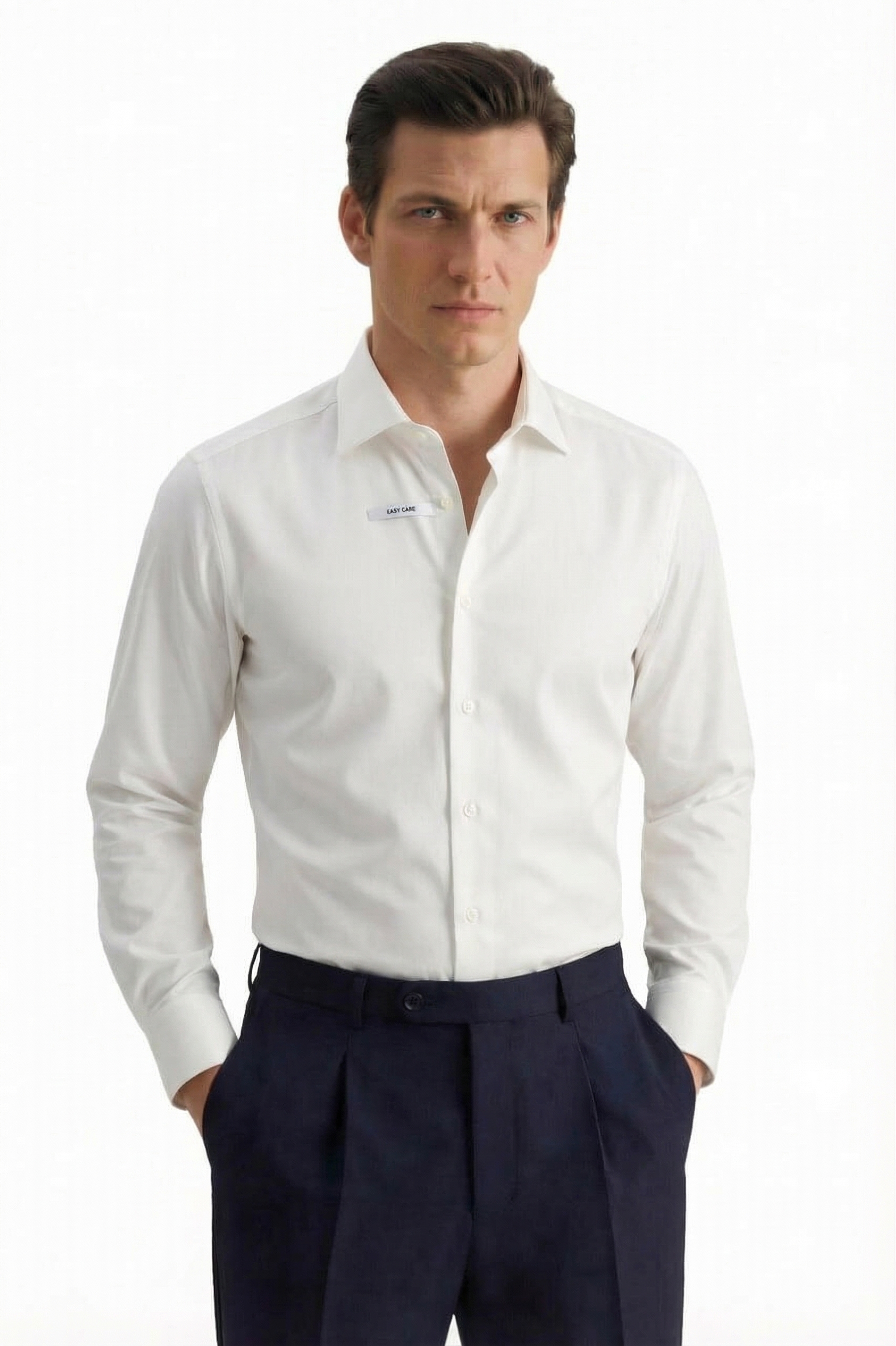• Shaped Fit, Классический воротник, Однотонный, Белый